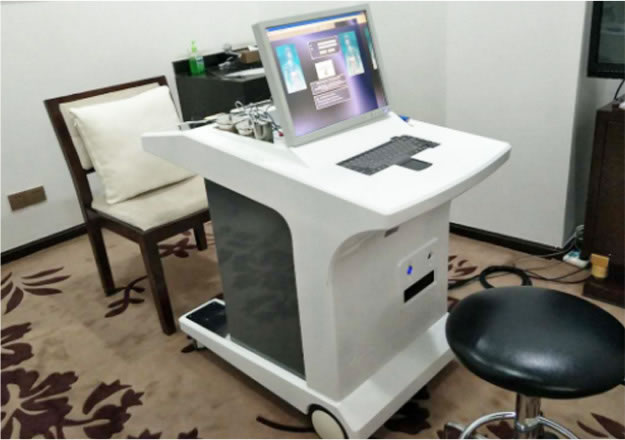 圖4為法國(guó)鷹演全身掃描儀,運(yùn)用低壓直流電刺激感應(yīng)技術(shù),對(duì)人身體素質(zhì)及能量活性值的檢測(cè),